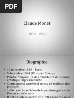 Il part étudier la peinture à paris en 1859 et se lie à pissarro. Claude monet est un peintre français connu pour son apport dans le mouvement artistique appelé impressionnisme... Monet est reconnu comme étant l'un des créateurs de l'impressionnisme, le plus convaincu et le plus constant des peintres impressionnistes, en même temps que le chef de file du mouvement impressionniste.